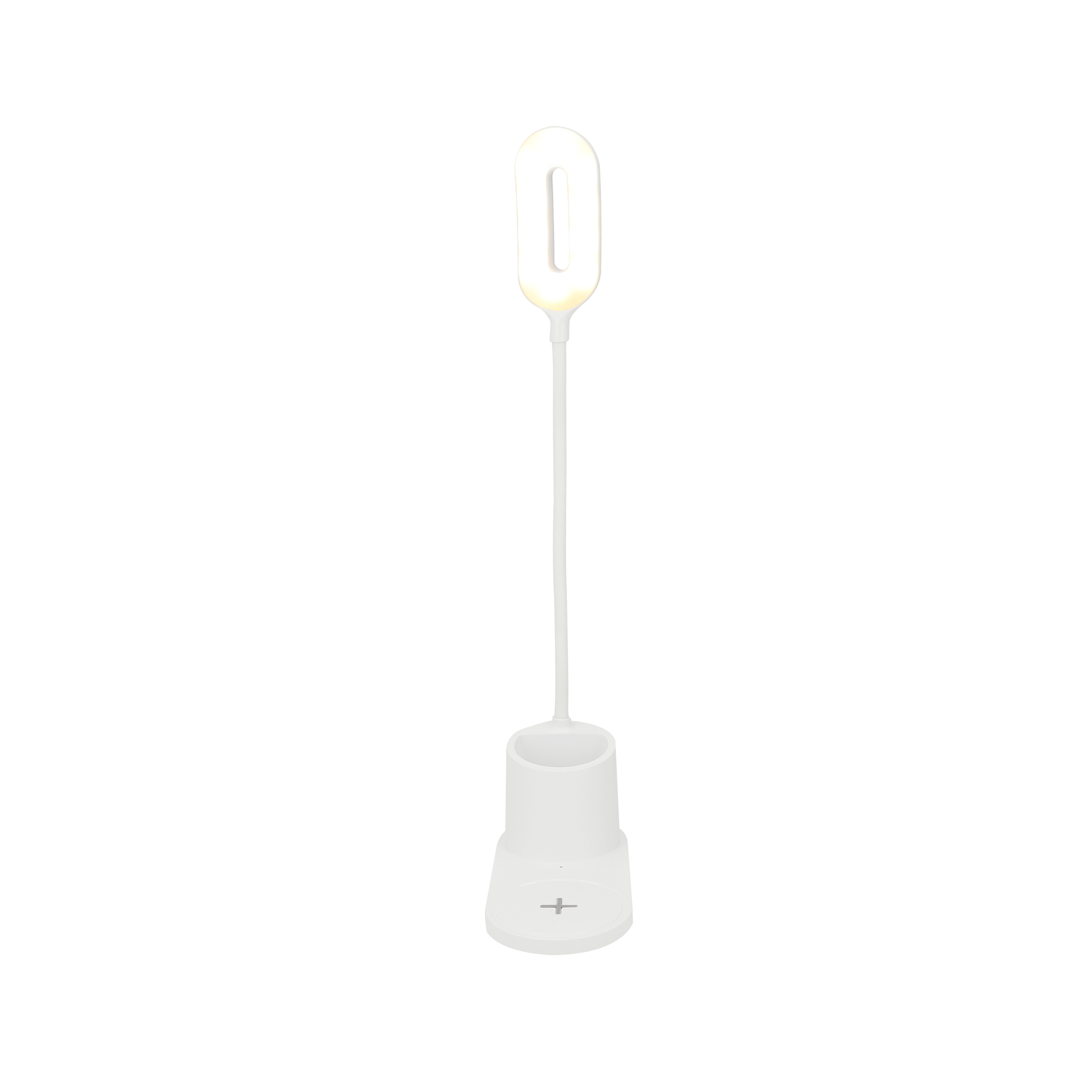 Lámpara para escritorio con organizador y cargador Wireless para smartphones compatibles con tecnología Qi. Incluye cable de carga.