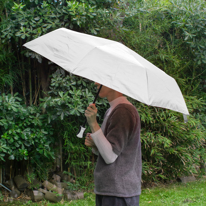 Paraguas APERTURA Y CIERRE AUTOMATICO. Eje metálico de color negro y varillas de fibra. Mango de plástico engomado con revestimiento de poliuretano color negro