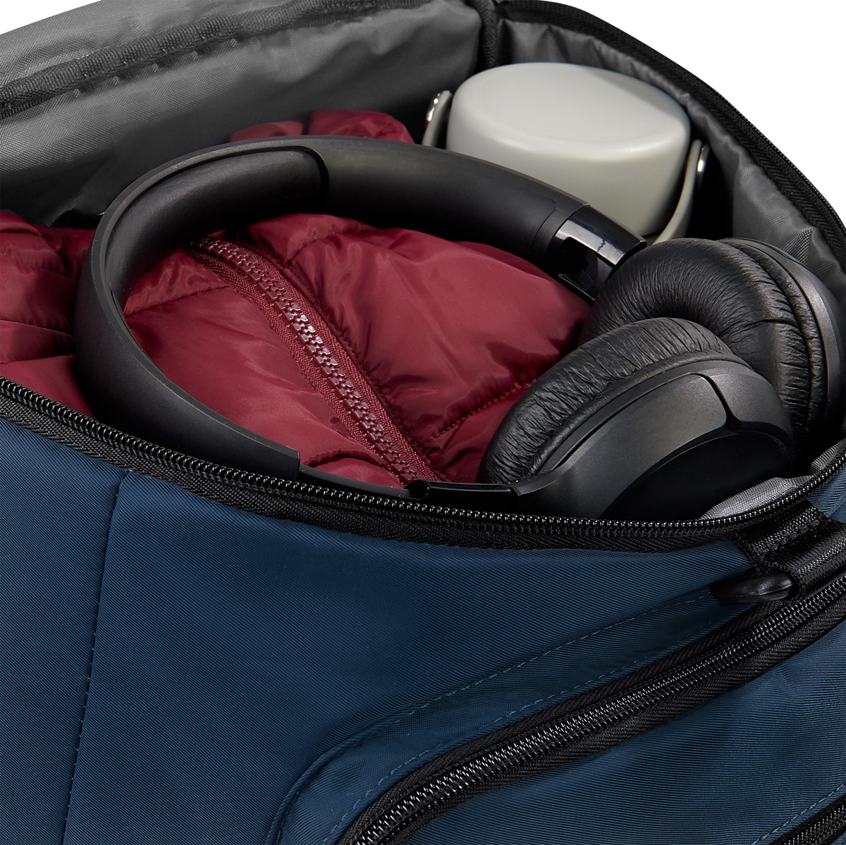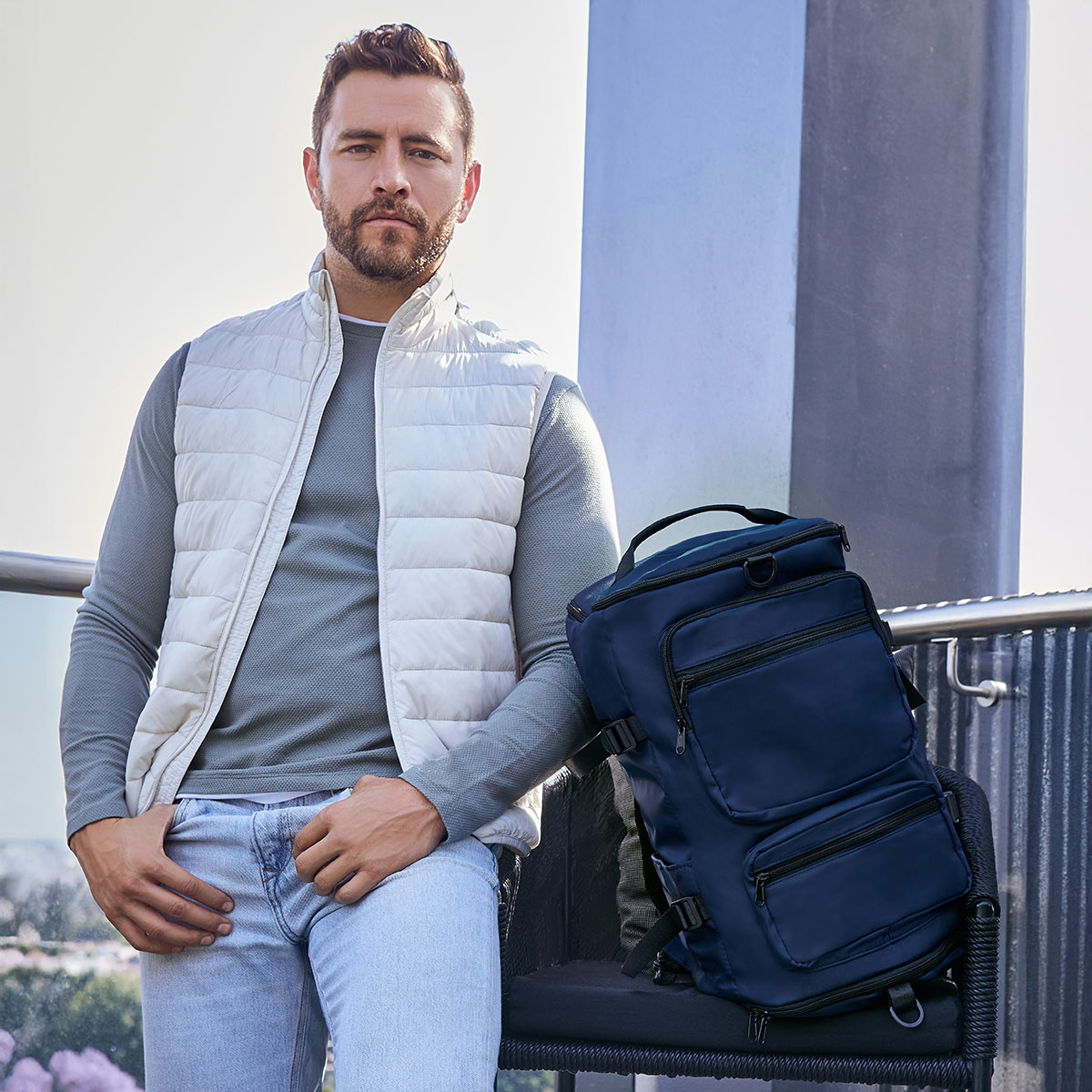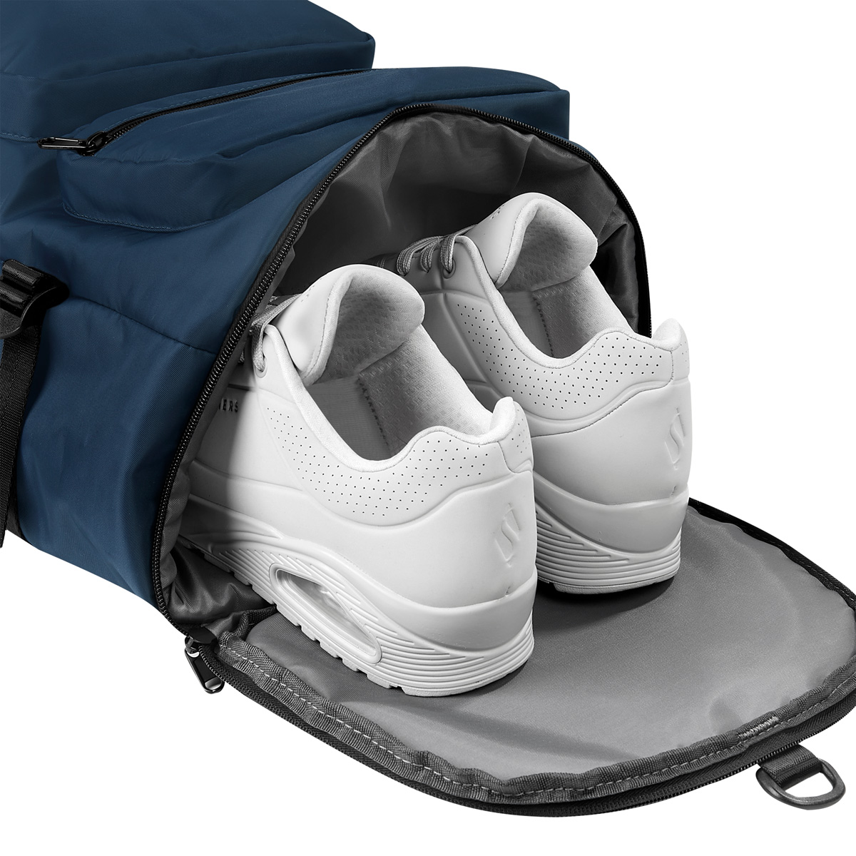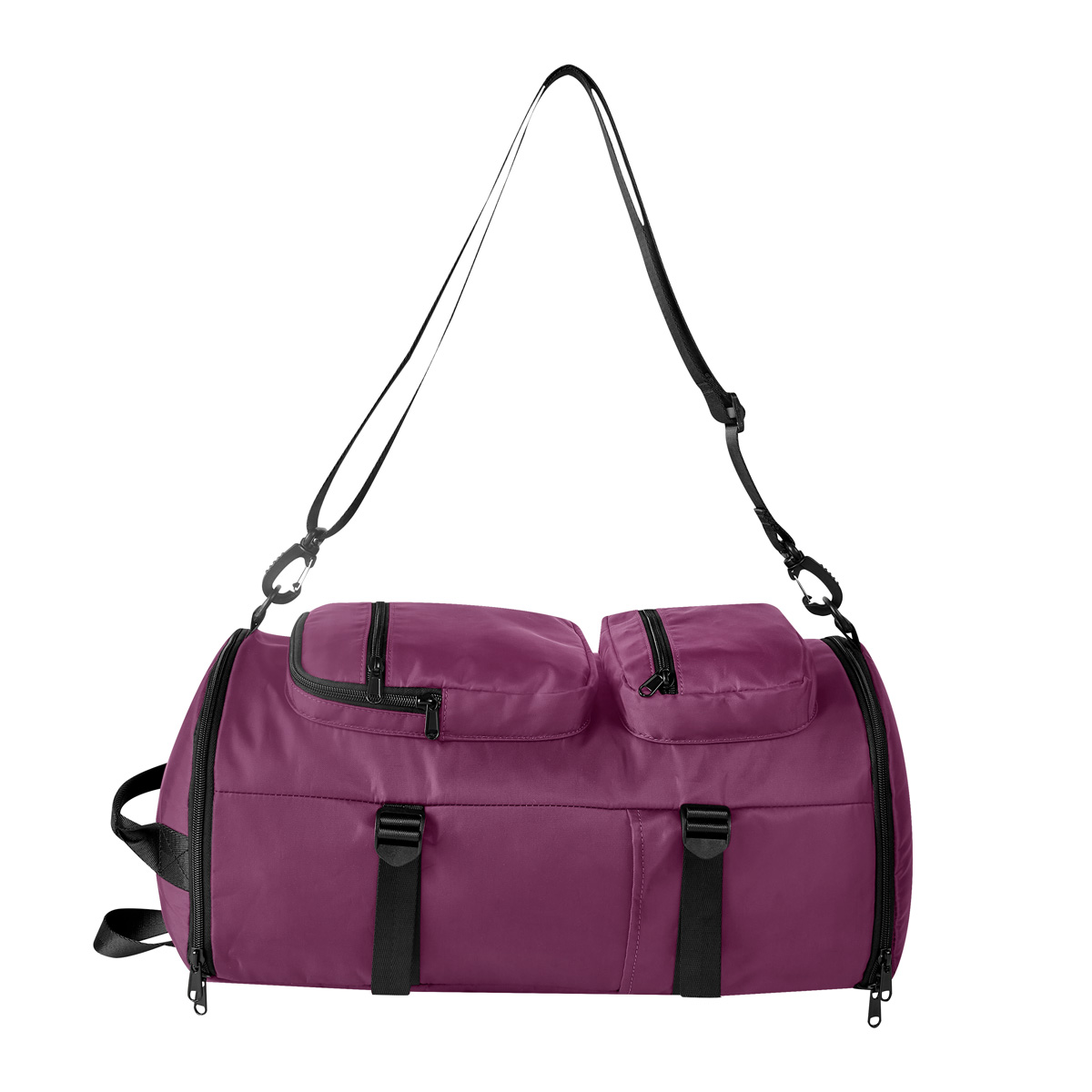 Mochila con función de maleta. Bolsa principal con cierre. Compartimento interno para laptop de 17". Bolsillo interior resistente al agua, bolsillo inferior con espacio y cierre para calzado. 2 bolsillos laterales. Compartimento trasero para ocultar asas. Incluye broches laterales para ajustar el tamaño, además de una correa removible para usar como maleta. Sus multiples espacios, permiten organizar mejor tus objetos personales. Ideal para utilizarla en viajes cortos o en el gimnasio.