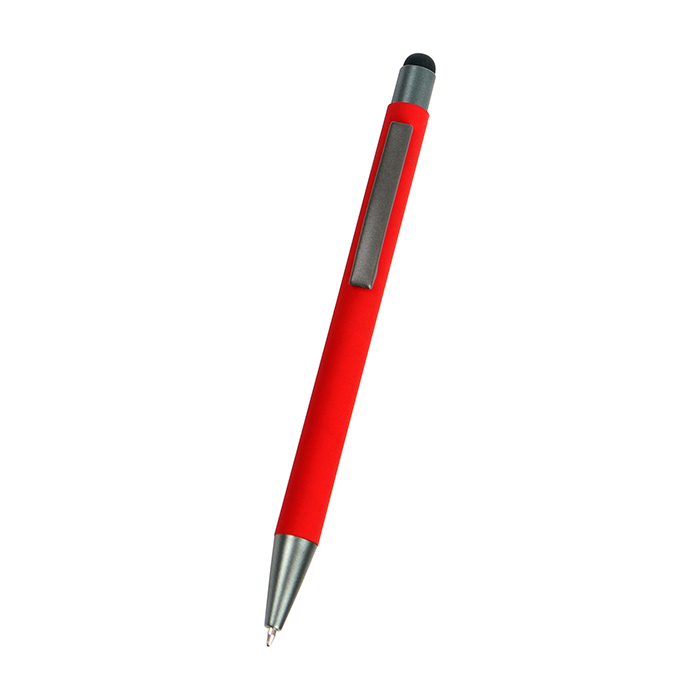 Bolígrafo touch fabricado en aluminio con cubierta Rubber, tinta de escritura negra.