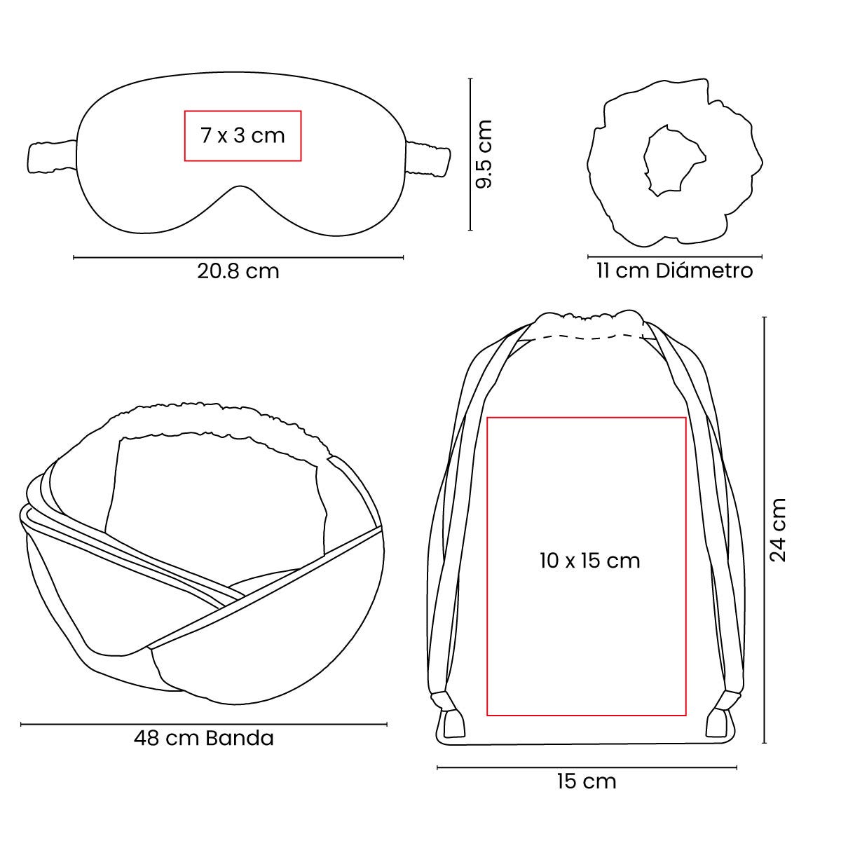 15 x 24 cm Bolsa / 20.8 x 9.5 cm Antifaz / 48 cm